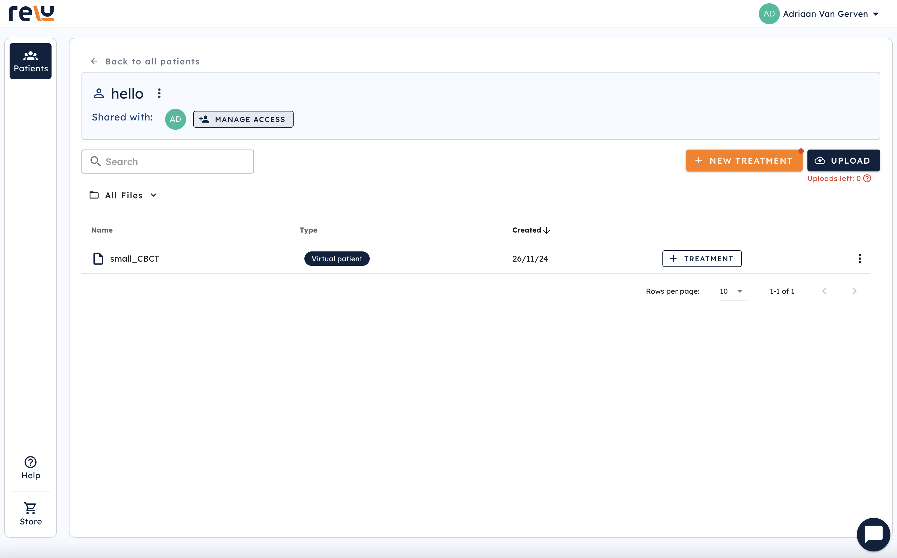 A patient serves as a way to group files and, potentially, organize them within folders. These files can include 3D images, making them easy to locate and share with colleagues, clients, or patients.