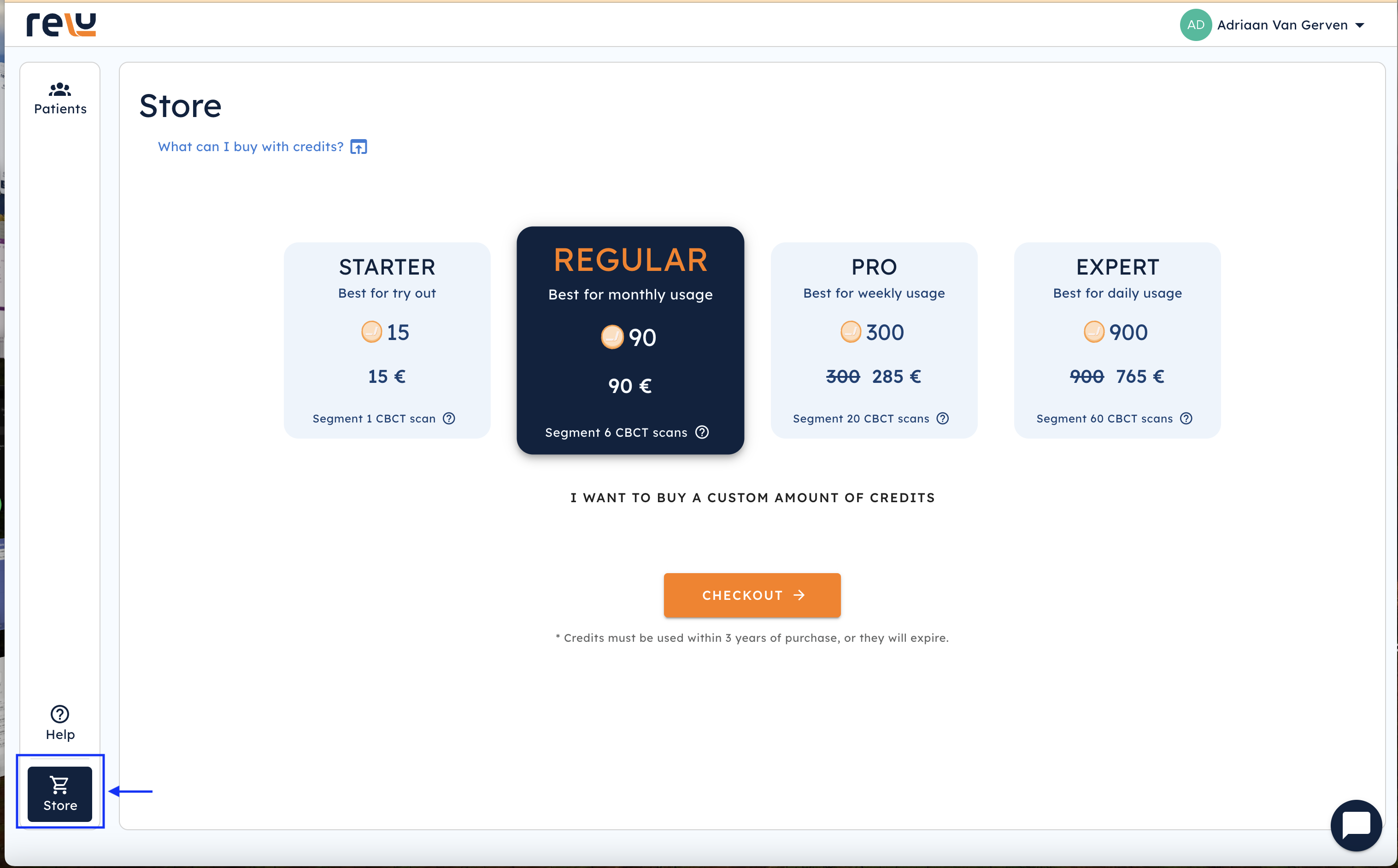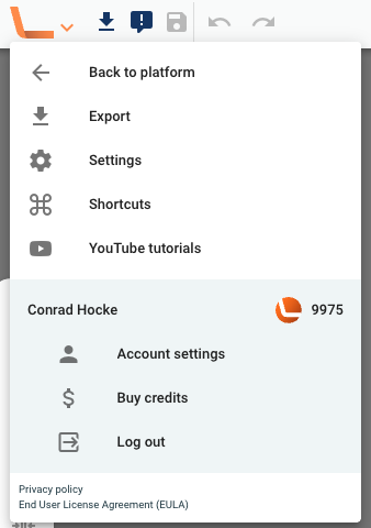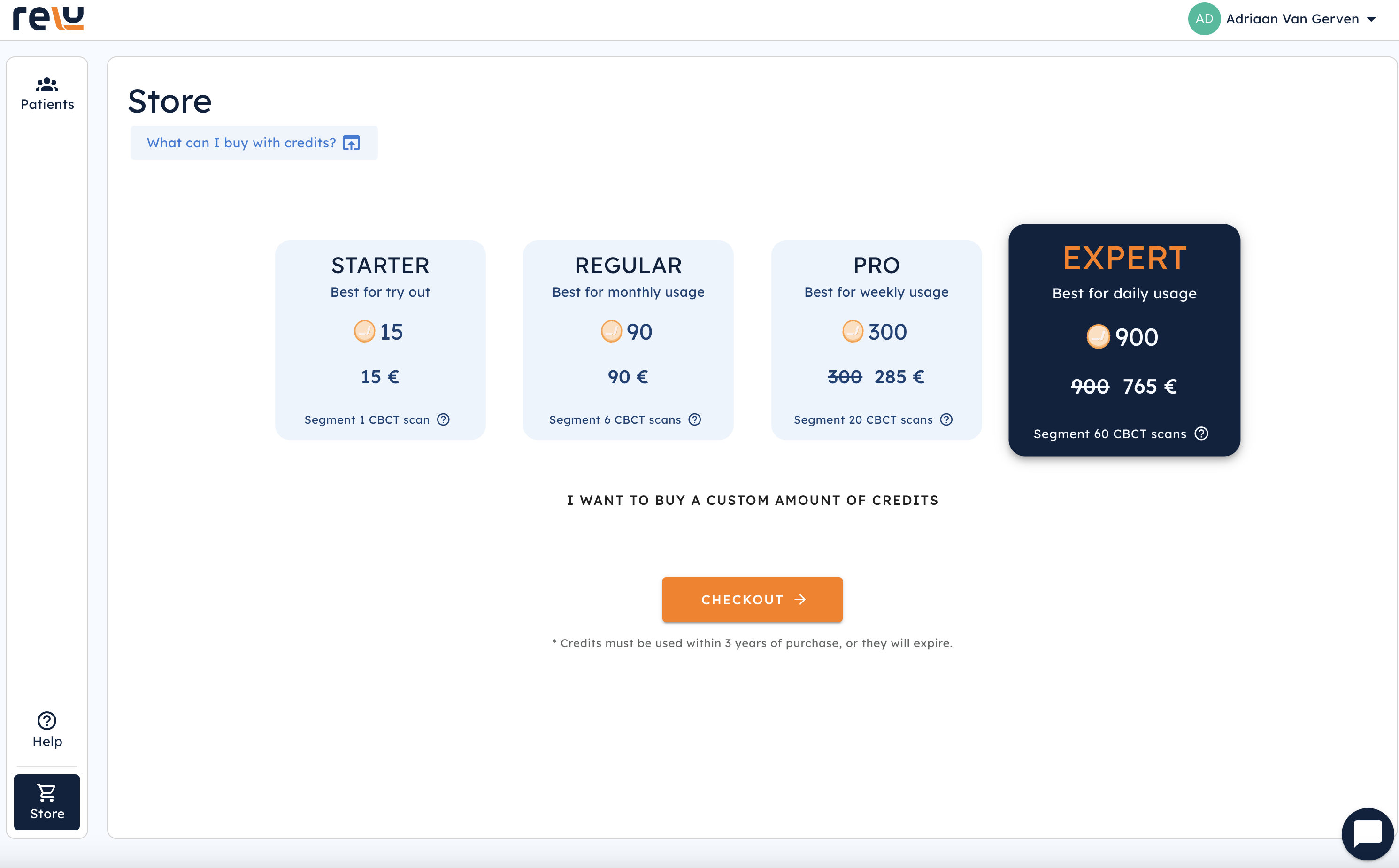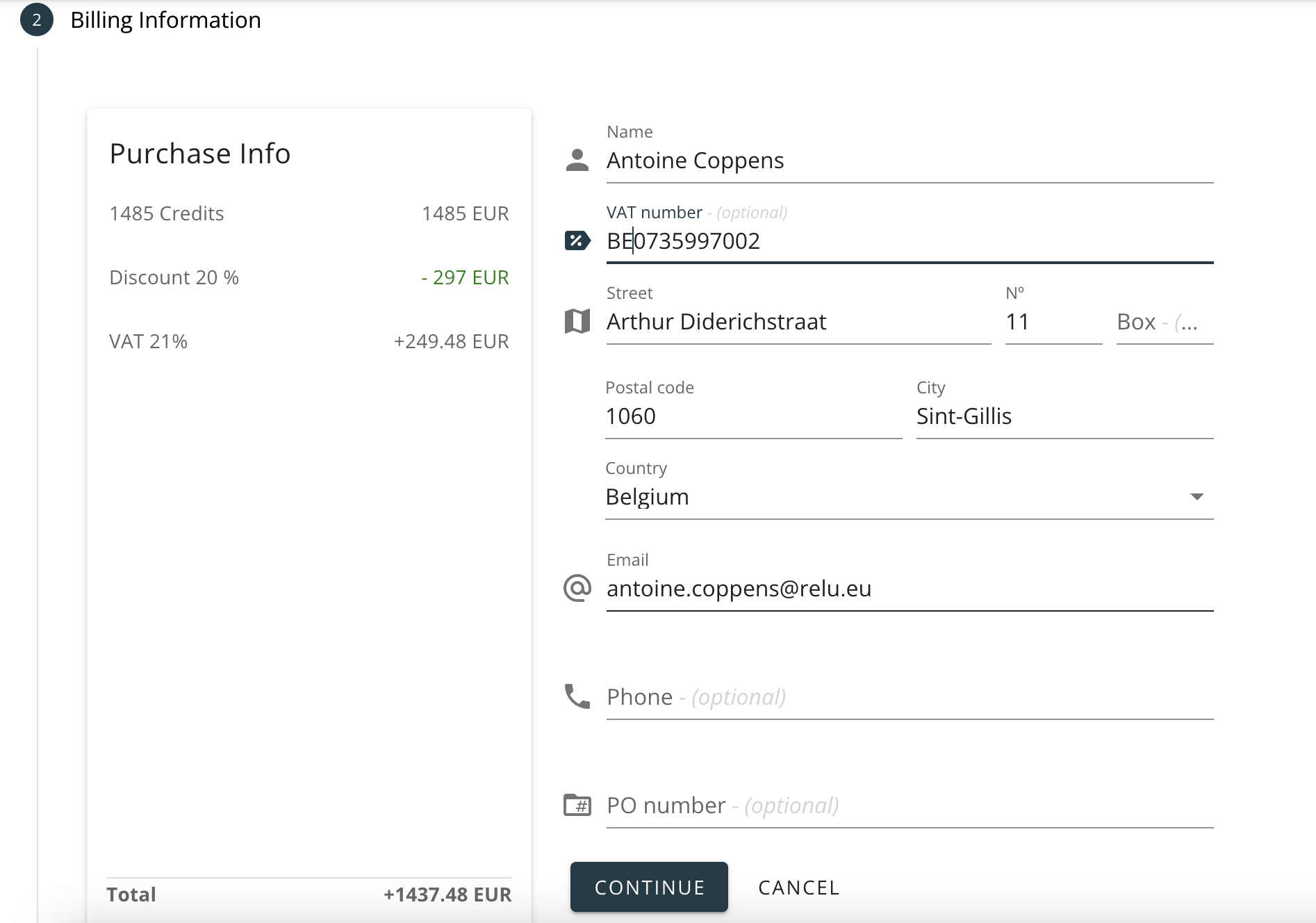 In order to gain access to exporting 3D files that were automatically or manually generated, the user has to purchase credits from Relu. A credit corresponds with 1 EUR.