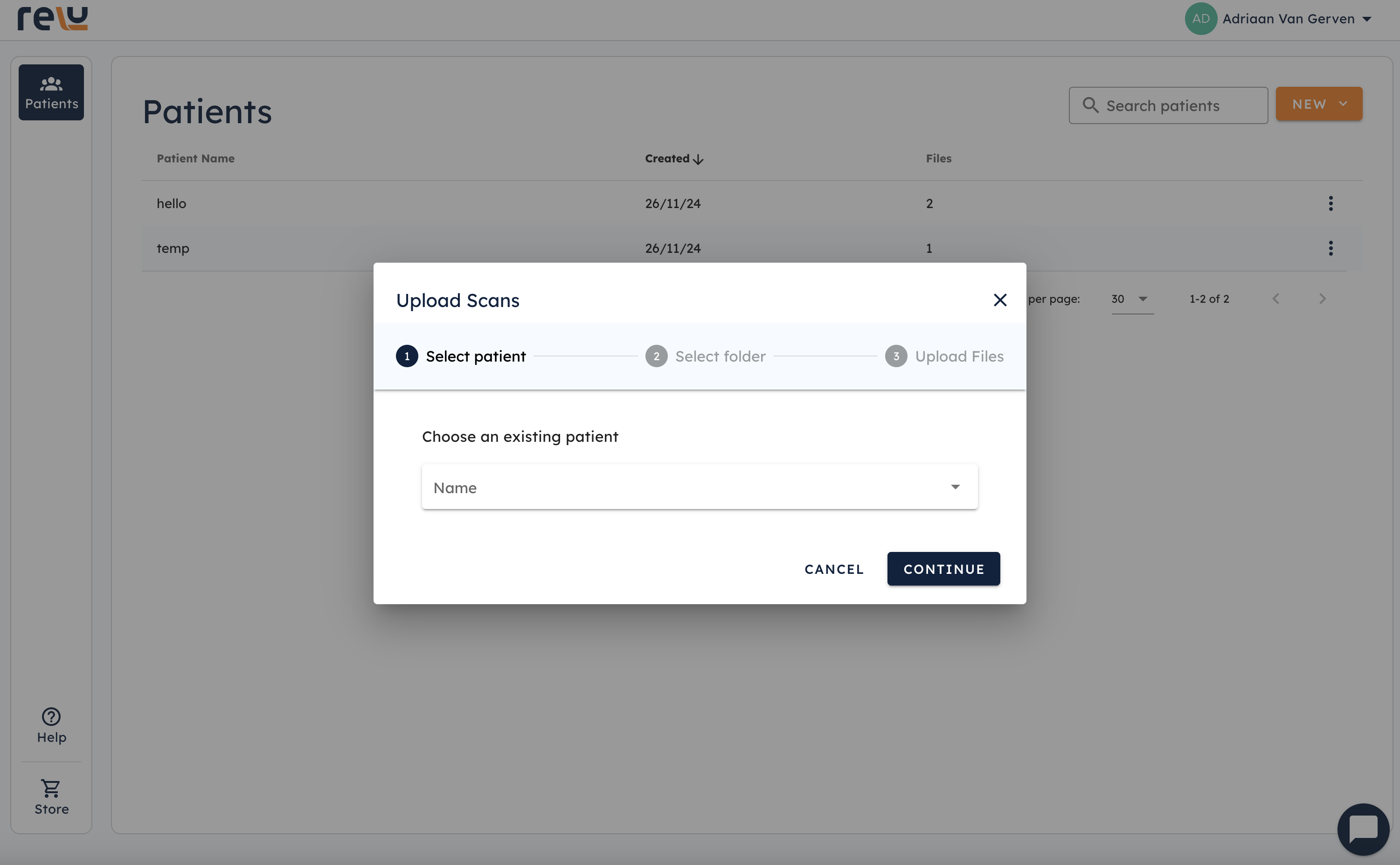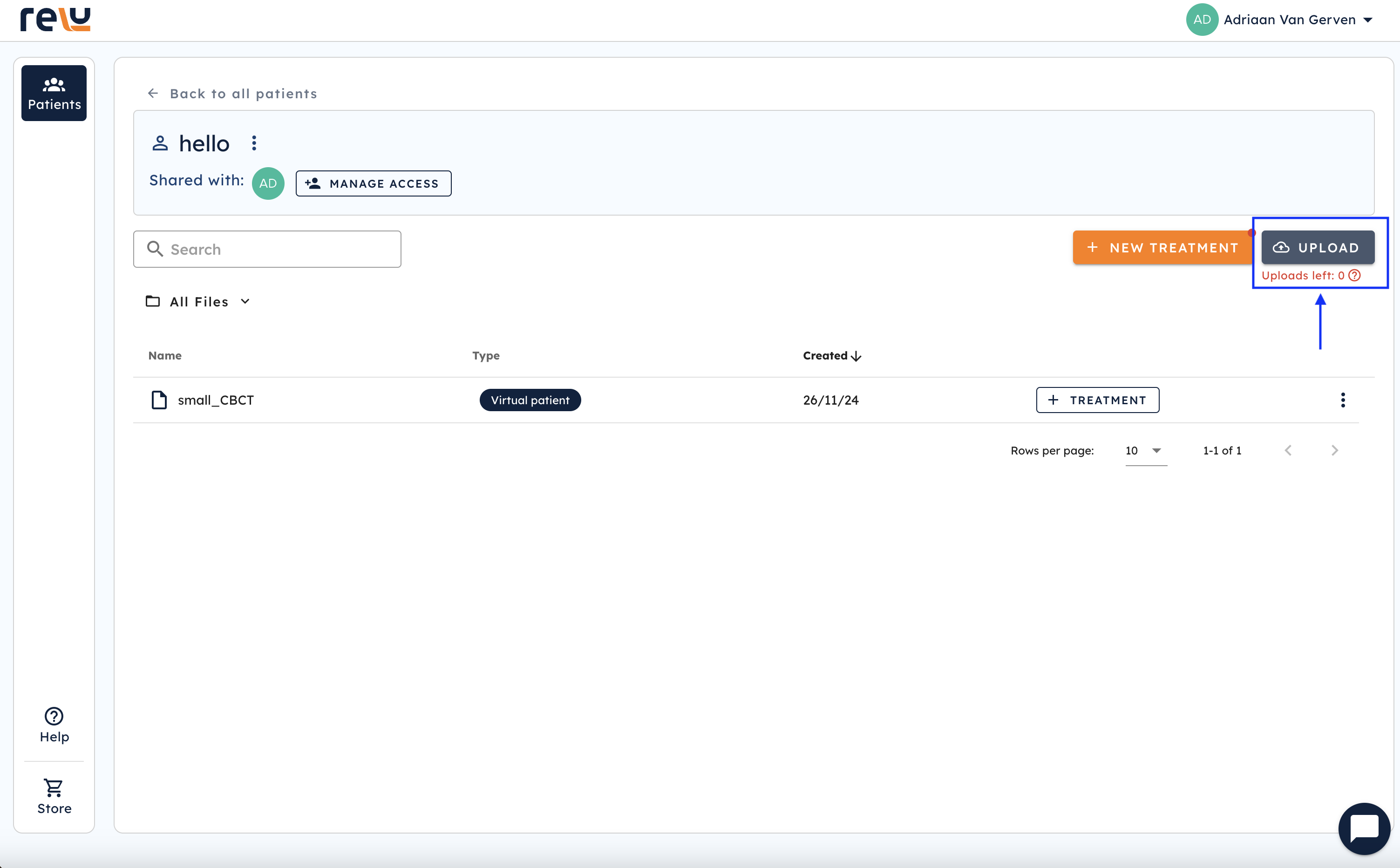 Go to the patient list and select the patient where files should be uploaded or create a new patient