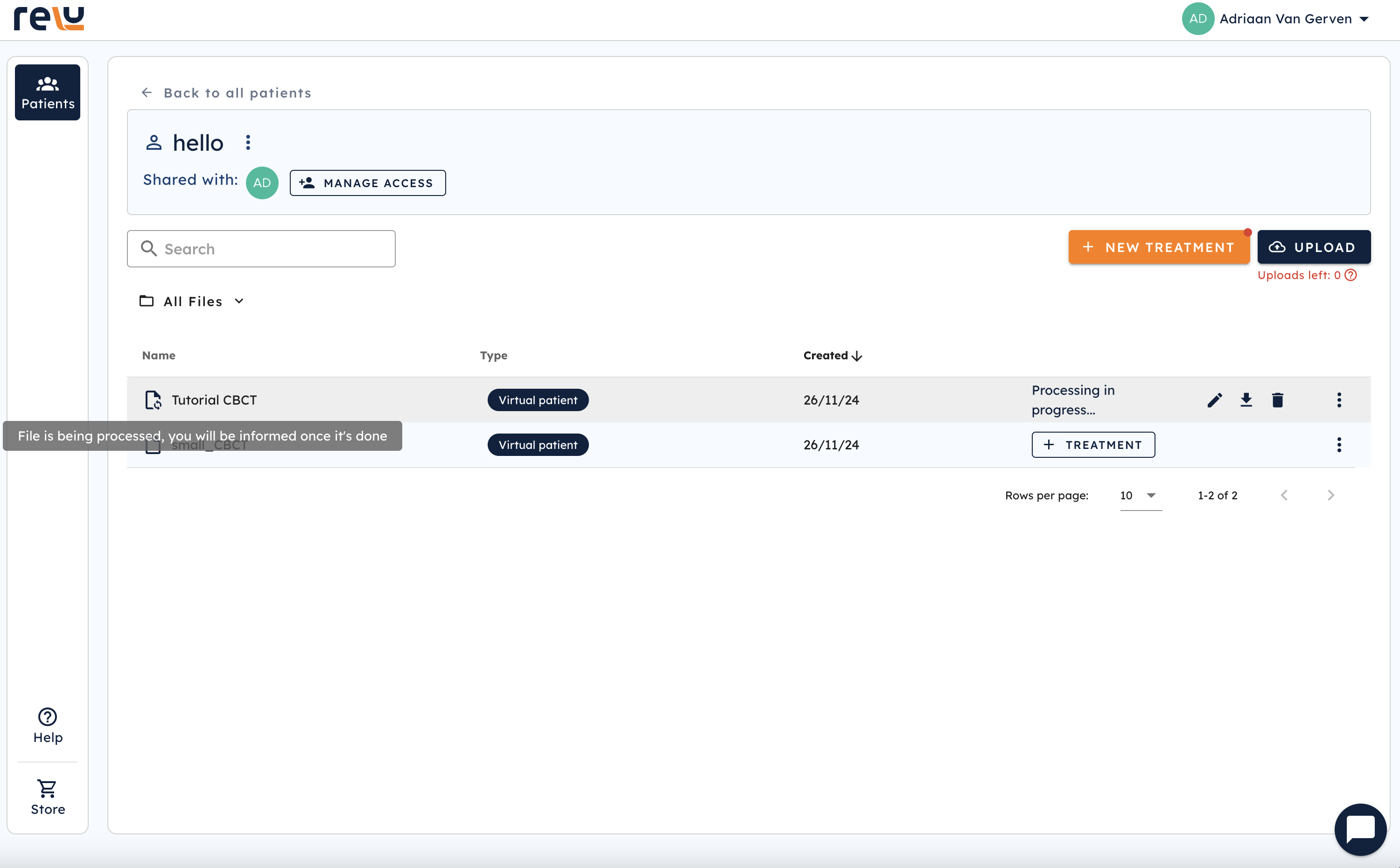 Once the file is uploaded, wait 5 - 10 minutes for the AI to finish the segmentation. This duration is dependent on whether or not a CBCT was uploaded, which structures were requested for segmentation and the size of the files.