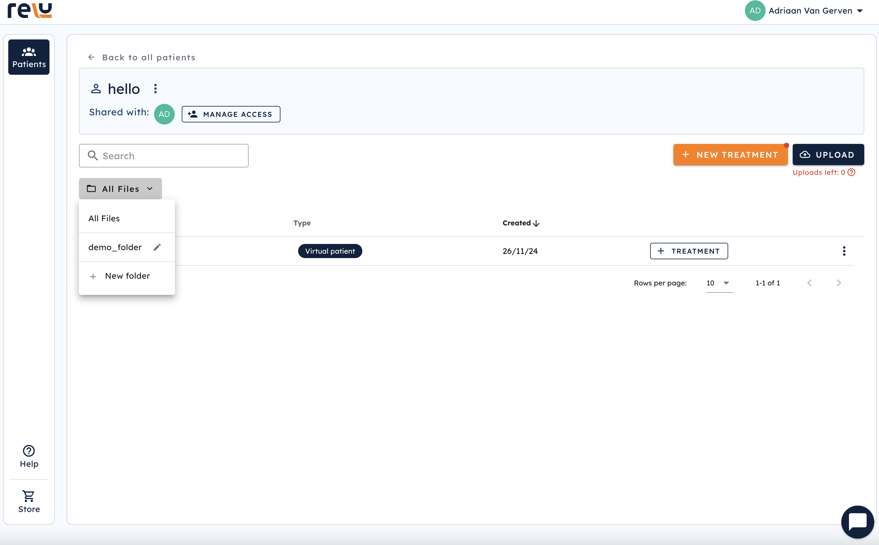 Inside this patient, if desired, you can create or select a folder to organise your scans. You can access this functionality in the dropdown.