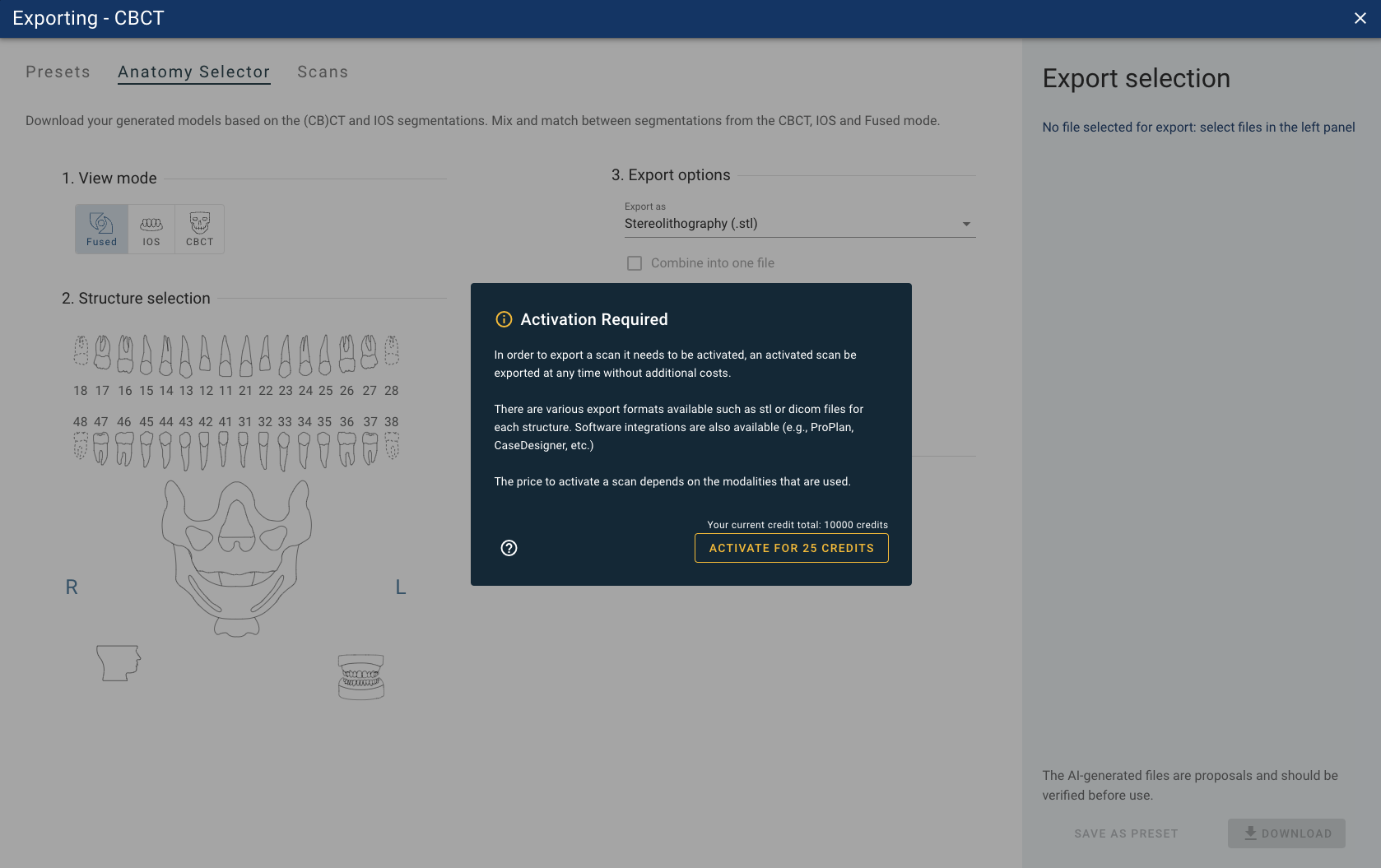 - Intraoral scan (IOS) segmentation for 3 Credits