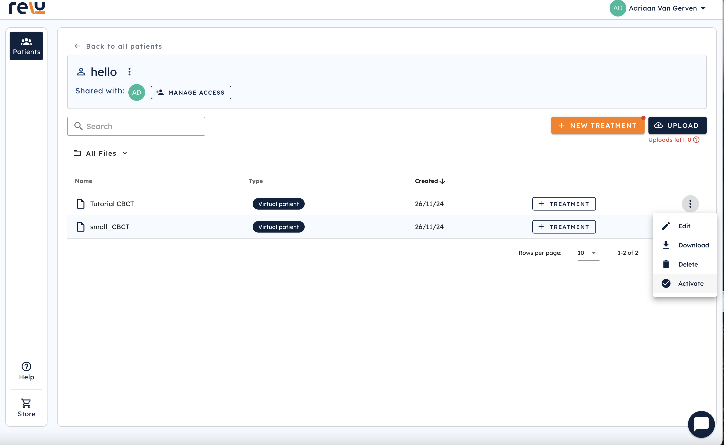 The Relu ® Cloud is a web-based Patient Management Software for dental Professionals. The Relu® Creator is a web-based, FDA approved and MDR certfied, segmentation software assisted by artificial intelligence developed by Relu BV based in Leuven, Belgium. Additionally, treatment applications are available on the Relu® Cloud; these are intended exclusively for demo purposes and are labeled accordingly.