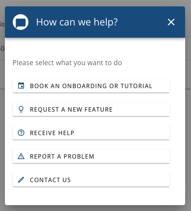 Request Assistance: Allows to book an onboarding, report bugs or feature requests.