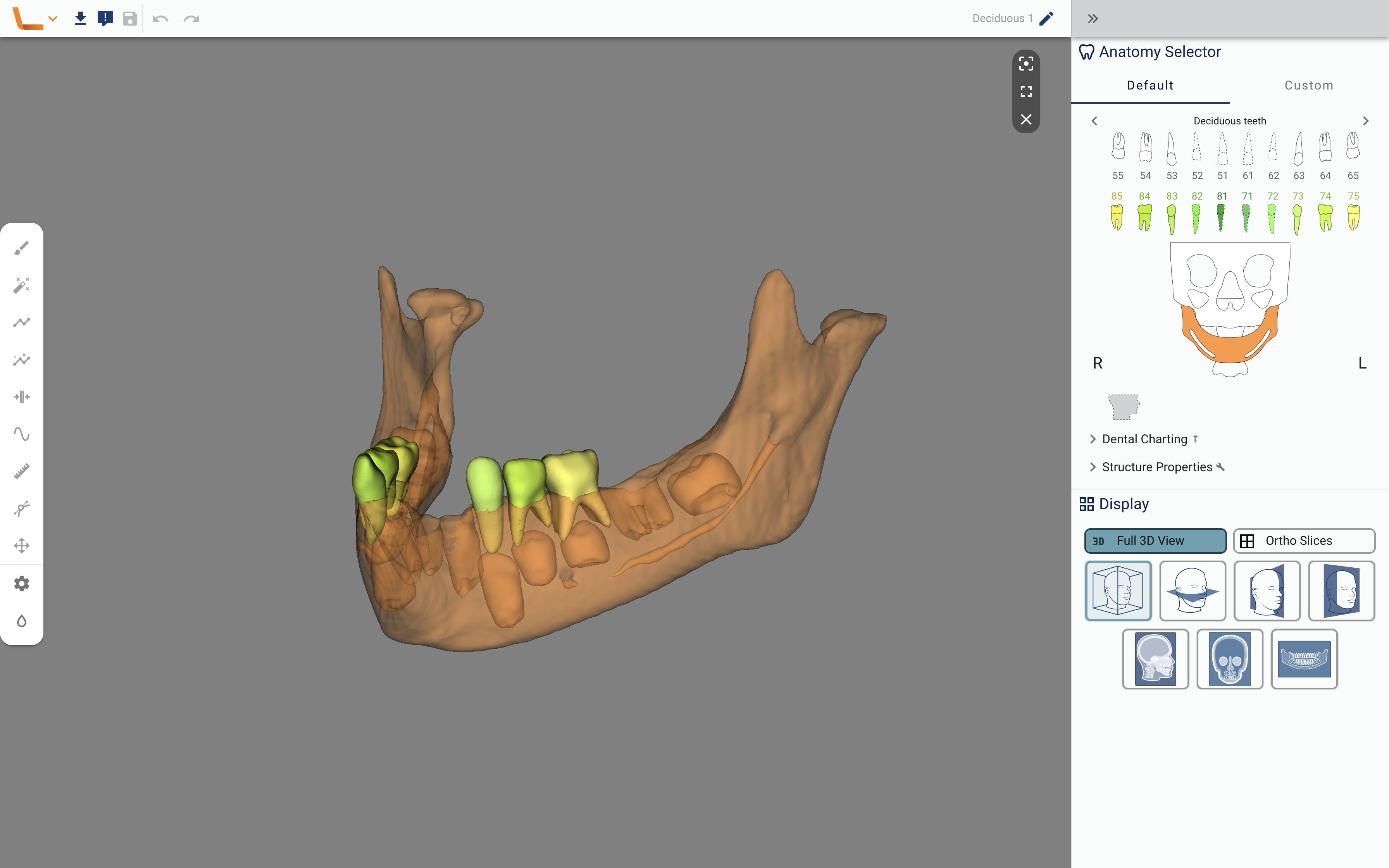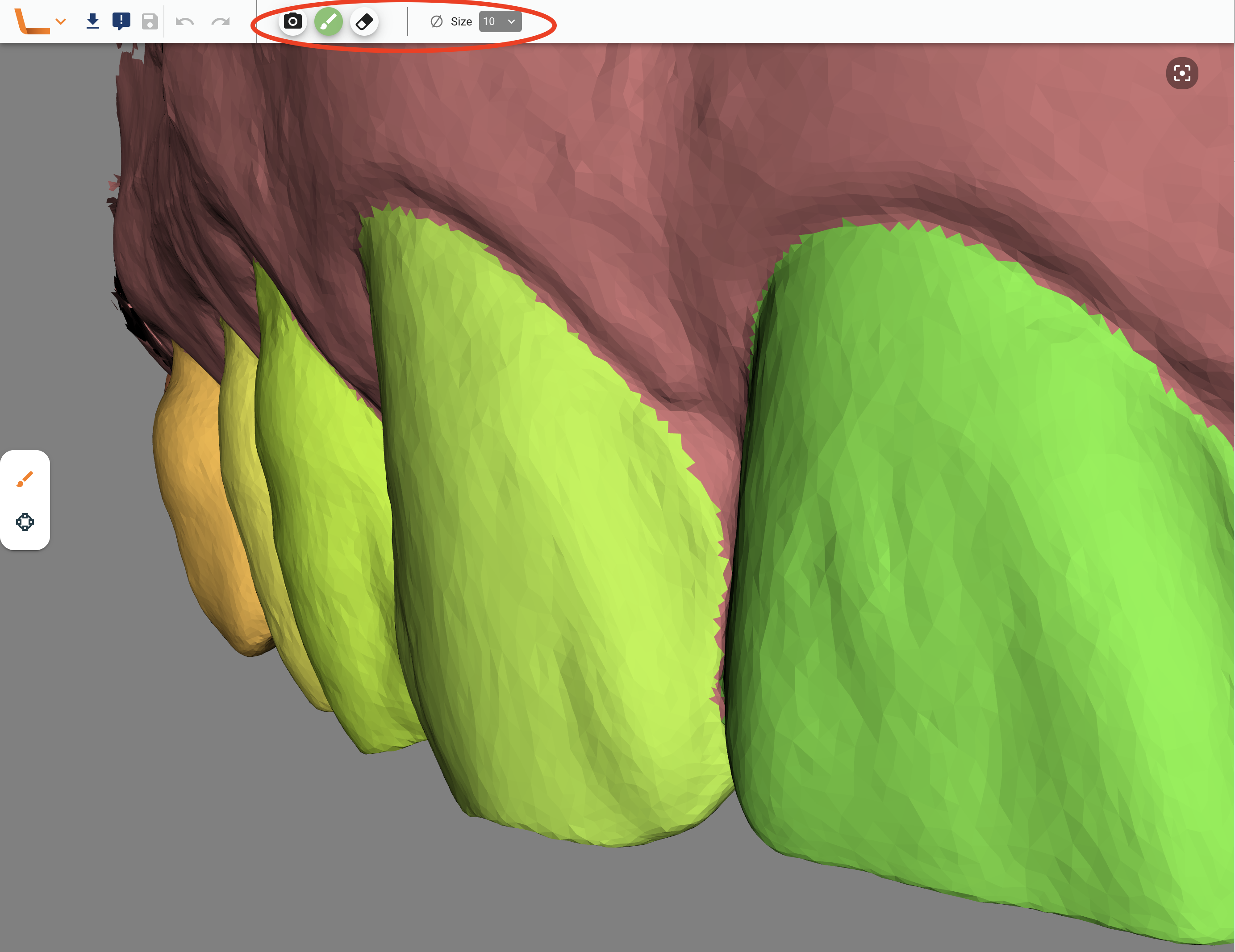 The Artificial Intelligence will create a proposal for the IOS segmentation when uploading an intra-oral scan or digital impression to the Relu® Cloud in STL or PLY format. The user receives full control to still change these segmentations by using two tools: 3D Contour Tool and 3D Paint Brush. The classification of the crowns can be changed by right clicking on a crown and choosing Change Label.