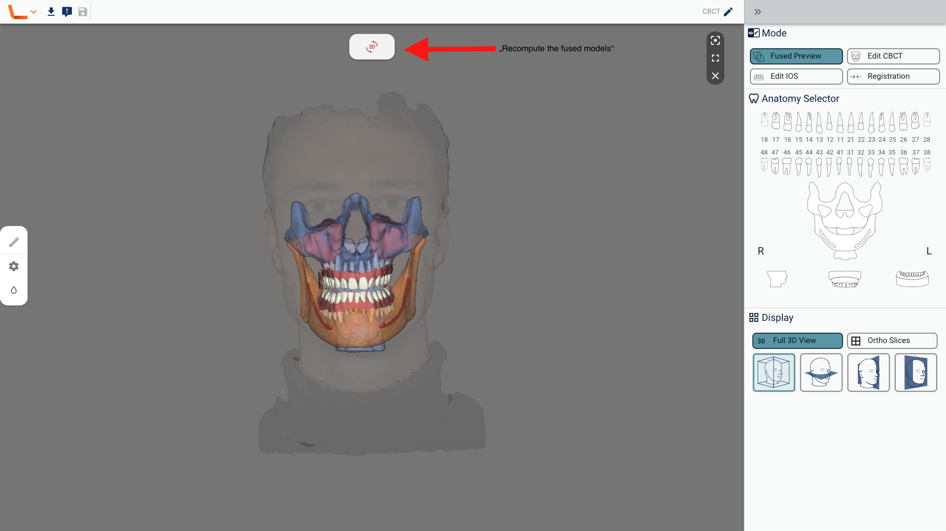 - Open the Fused Preview, edit CBCT mode or Registration mode
