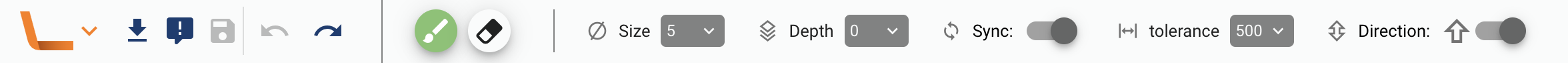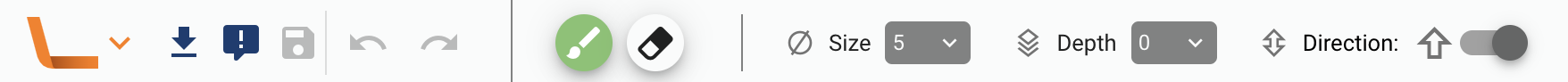 - Select the correct mode (camera mode for viewing, paint mode or erase mode) and select the optimal diameter for the brush.