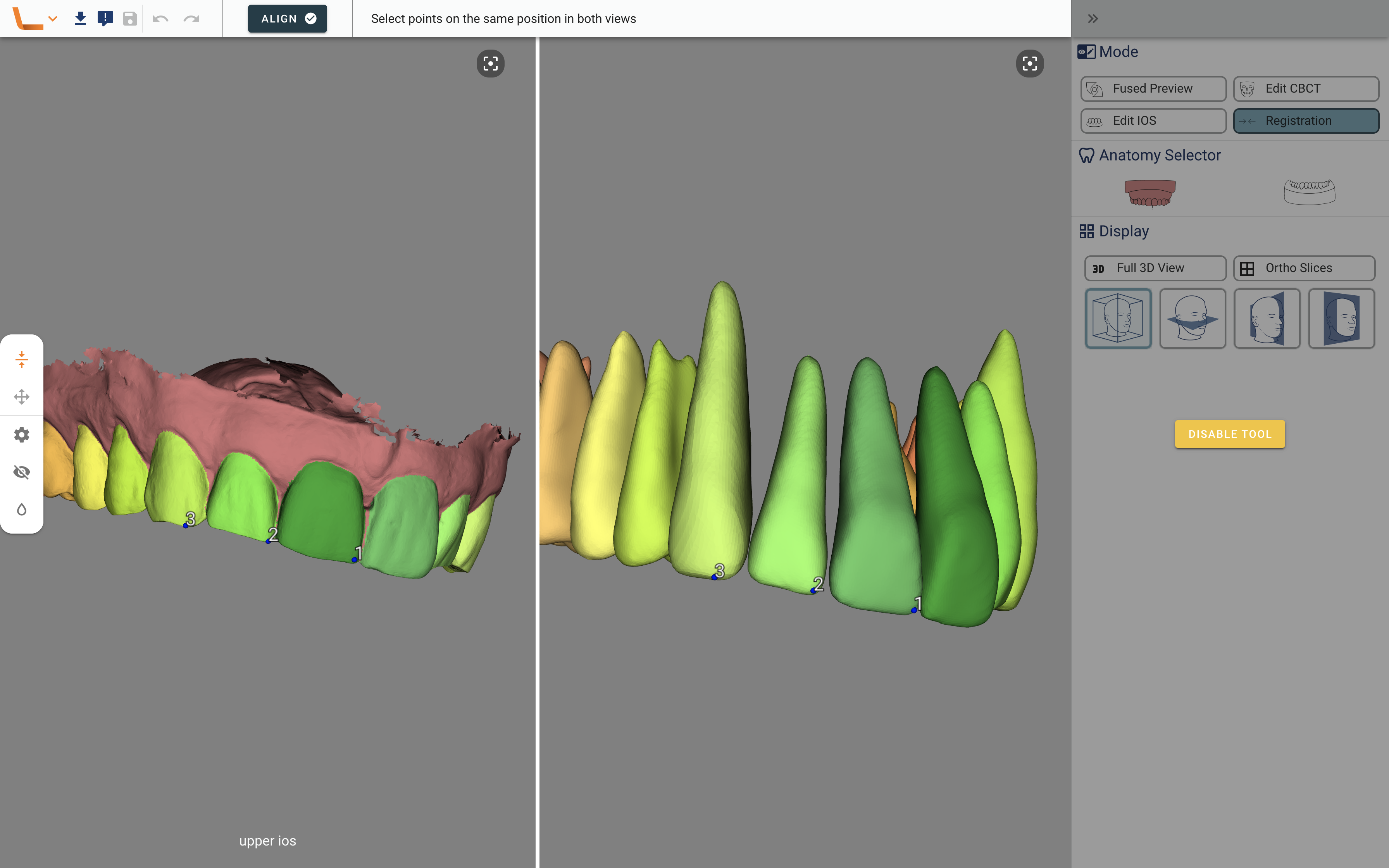 Place a point on the intra oral scan and then a point on the CBCT teeth at exactly the same location.