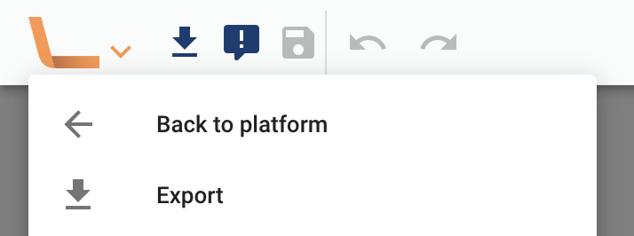 Click on the export button in the top bar next to the save button or open the setting by clicking on the Relu icon and click Export.