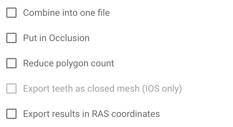 Choose if the teeth should be exported as a closed mesh (IOS only):