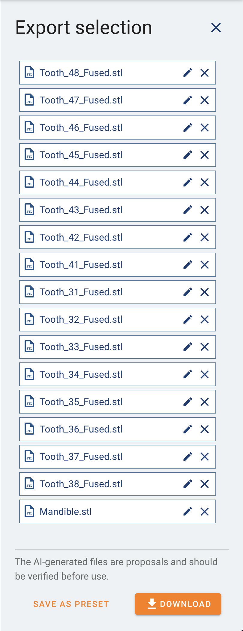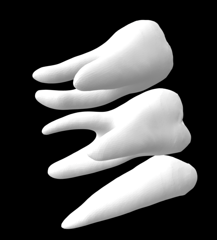 If you upload an IOS-Scan and activate the advanced option to “request closed crowns” while finalizing the upload, roots are added when exporting teeth as a closed mesh: