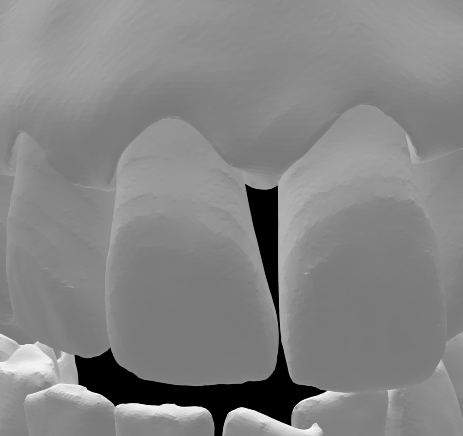 By default segmented teeth from the IOS scan are exported as an open mesh: